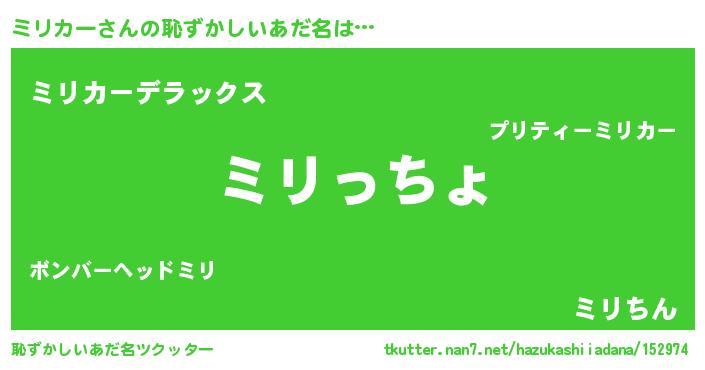 | 意味不明あだ名 | 『ミリカーフォーエバー』『自称ミリカー』 |