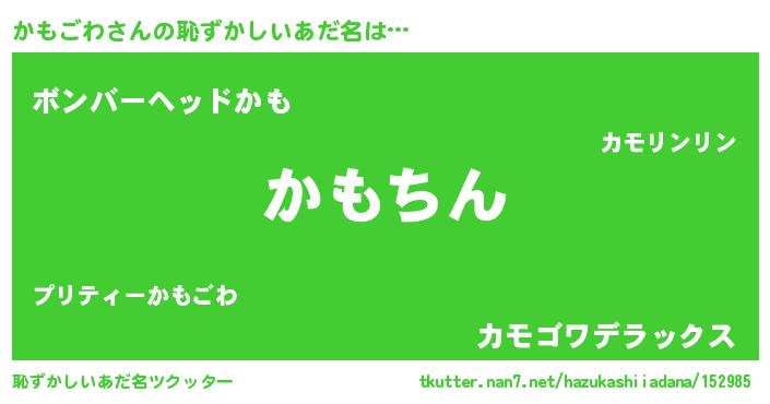 | ヘコむあだ名 | 『かもごわ(震え声)』『かも太郎』 |
