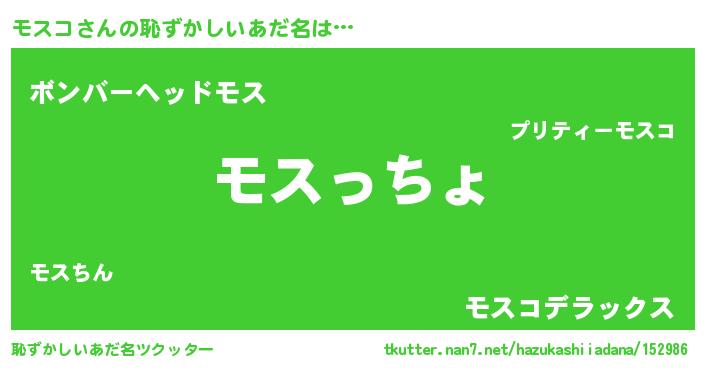 | ヘコむあだ名 | 『なまこ酢』『モスにー』『モスお』 |