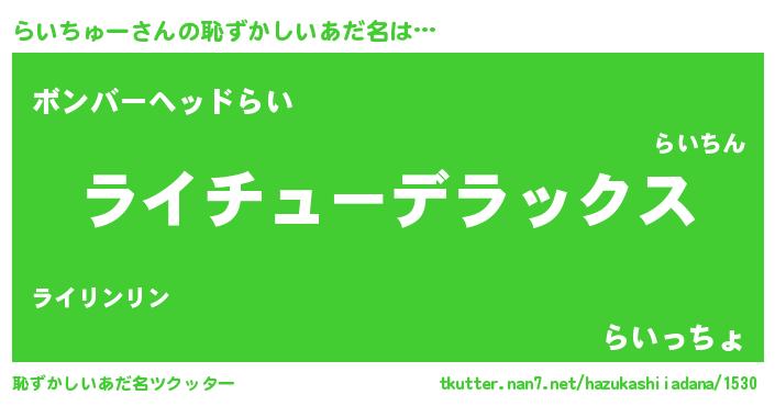 | 肩書あだ名 | 『らいちゅー上級大将』『らいちゅー閣下』 |