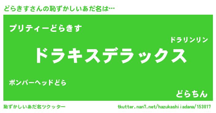 | ヘコむあだ名 | 『どらにゅー』『どらきす(爆)』 |