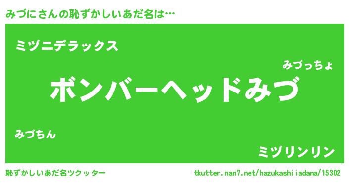 | 男性向けラノベタイトル風あだ名 | 『みづに~年齢イコール彼女いない歴の魔法使い~』 |