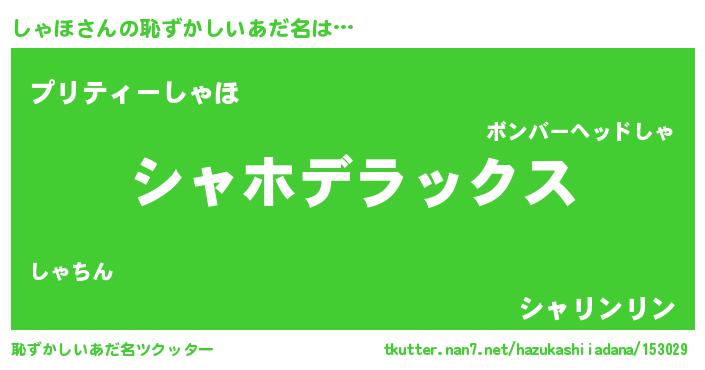 | 意味不明あだ名 | 『自称しゃほ』『エリンギ科しゃほ属』 |