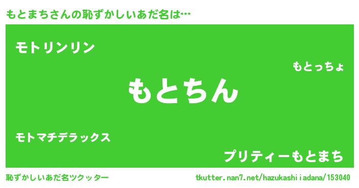 | ヘコむあだ名 | 『もとまち(爆)』『もとお』 |