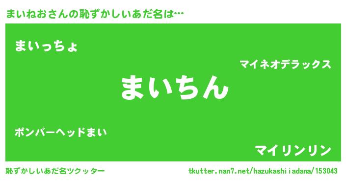 | 意味不明あだ名 | 『永久保存まいねお』『自称まいねお』 |