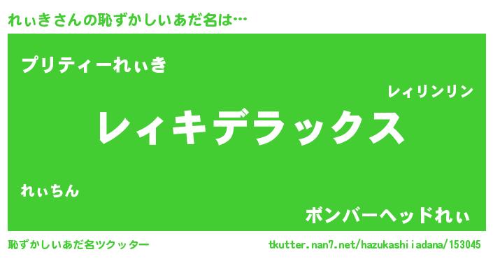 | ヒーロー風カッコイイあだ名 | 『ウルトラ戦士レィキ』『スーパーレィキ』 |