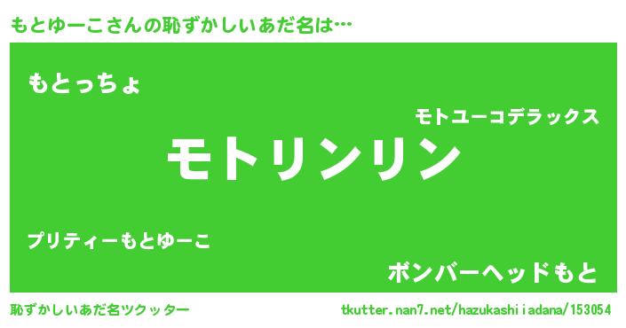 | 男性向けラノベタイトル風あだ名 | 『もとゆーこの嫁は女の子じゃないと思った?』 |