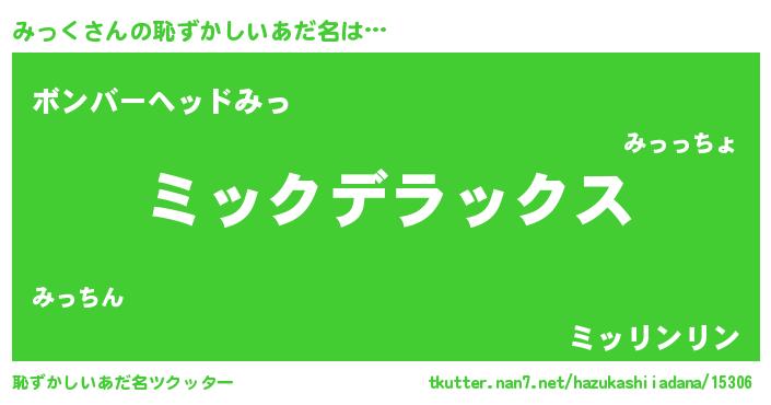 | ヒーロー風カッコイイあだ名 | 『ウルトラ戦士ミック』『愛の使者みっく』 |