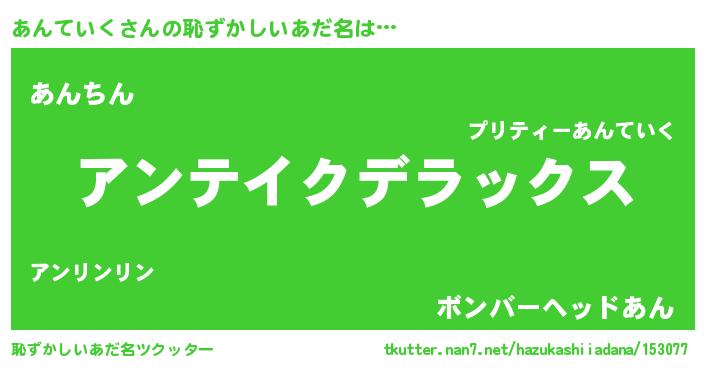 | ヒーロー風カッコイイあだ名 | 『最強戦士アンテイク』『仮面アンダー』 |
