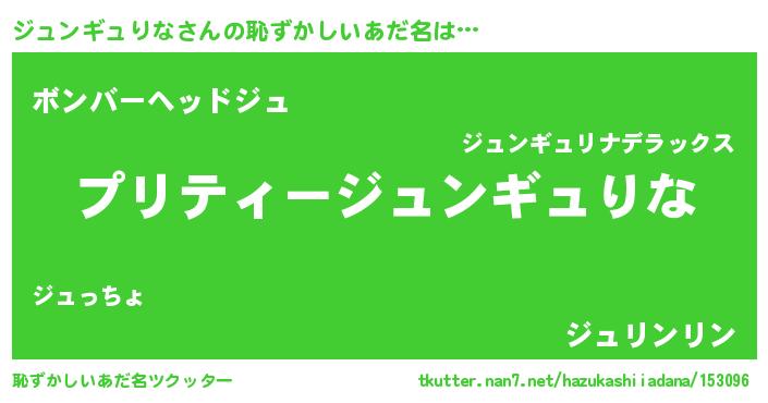 | 女子向けラノベタイトル風あだ名 | 『乙女ゲームの破滅フラグしかない悪役ジュンギュりなに転生してしまった…』 |