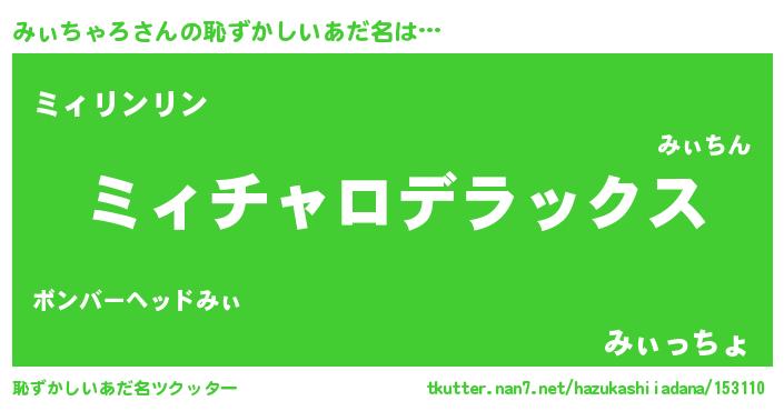 | 意味不明あだ名 | 『自称みぃちゃろ』『永久保存みぃちゃろ』 |