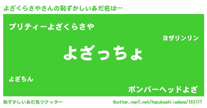 | ヘコむあだ名 | 『つくし』『よざにゅー』『よざっ子』 |