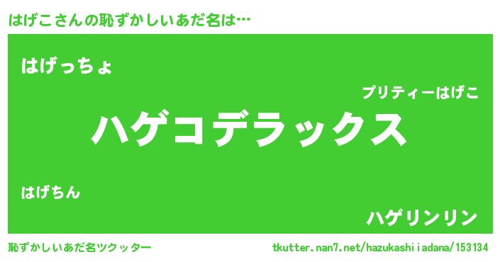 | 男性向けラノベタイトル風あだ名 | 『Re:はげこから始める異世界生活』 |