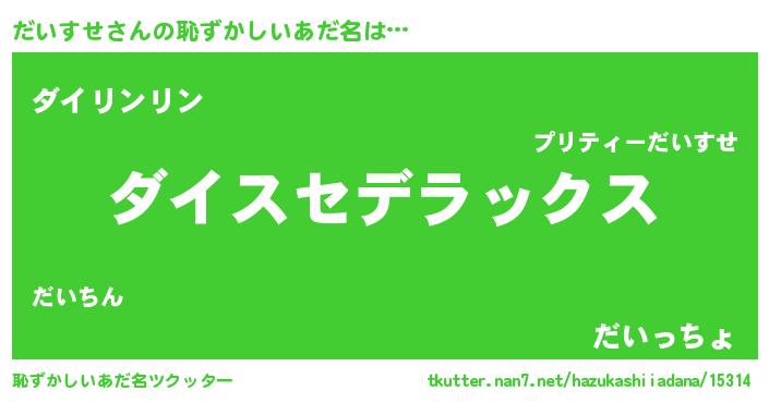 | 意味不明あだ名 | 『自称だいすせ』『だいすせフォーエバー』 |