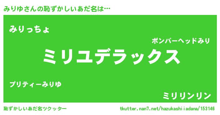 | 意味不明あだ名 | 『自称みりゆ』『みりゆフォーエバー』 |