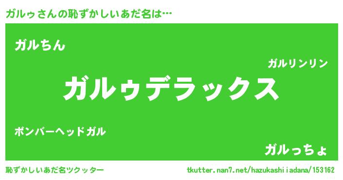 | 意味不明あだ名 | 『自称ガルゥ』『永久保存ガルゥ』 |