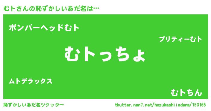| ヘコむあだ名 | 『酢こんぶ』『むト(笑)』『むト太郎』 |