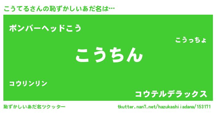 | ヒーロー風カッコイイあだ名 | 『ネオコウテル』『慈愛の使者こうてる』 |
