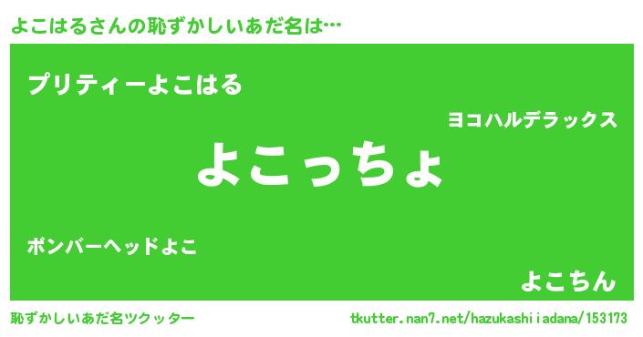| 意味不明あだ名 | 『よこはるフォーエバー』『自称よこはる』 |