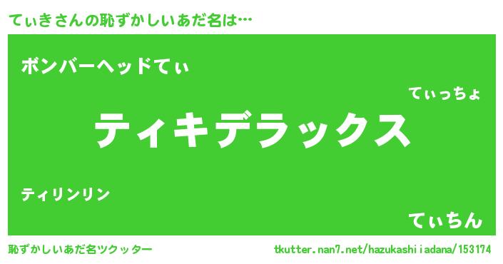 | 意味不明あだ名 | 『自称てぃき』『眠気覚ましガムてぃき味』 |