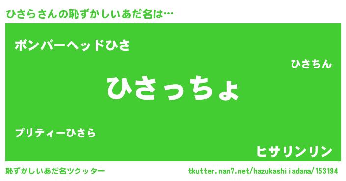 | 欧米人風あだ名 | 『ひさら・ステッグマイヤー』 |