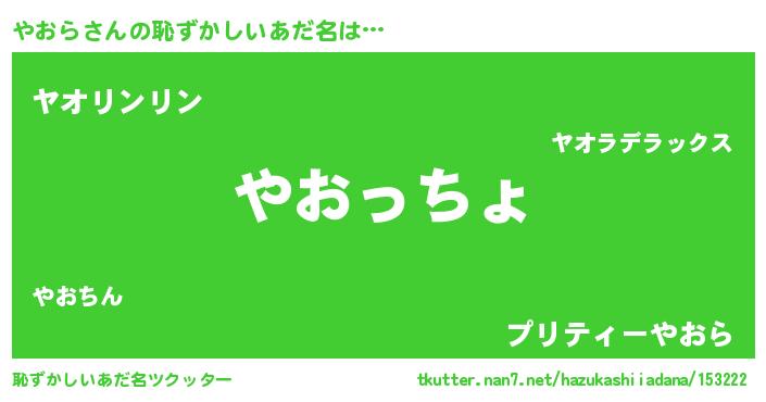 | 意味不明あだ名 | 『やおらフォーエバー』『ペロリンやおら』 |