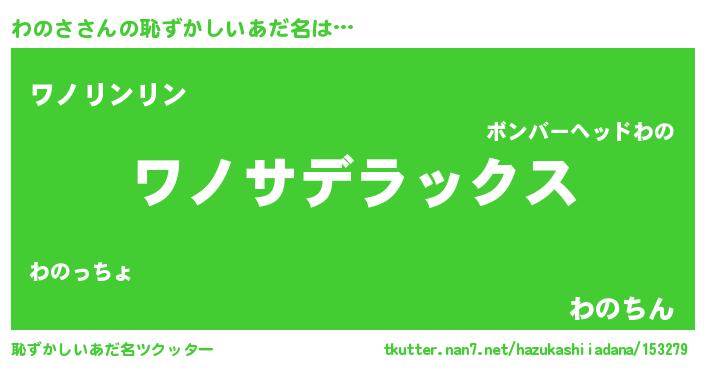 | ヘコむあだ名 | 『わの太郎』『わのさ(笑)』 |