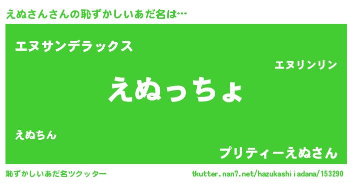 | 男性向けラノベタイトル風あだ名 | 『この素晴らしい世界にえぬさんを!』 |
