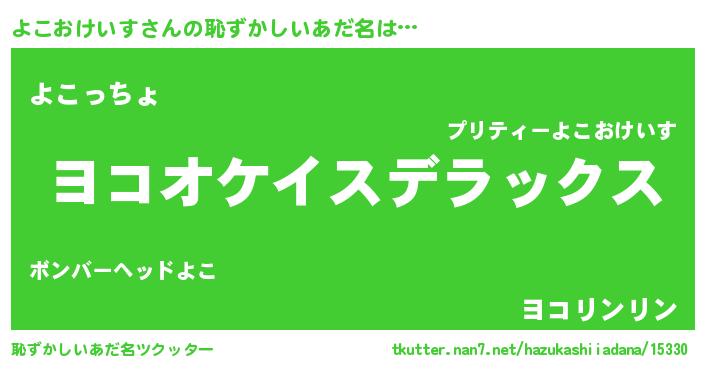 | 男性向けラノベタイトル風あだ名 | 『Re:よこおけいすから始める異世界生活』 |