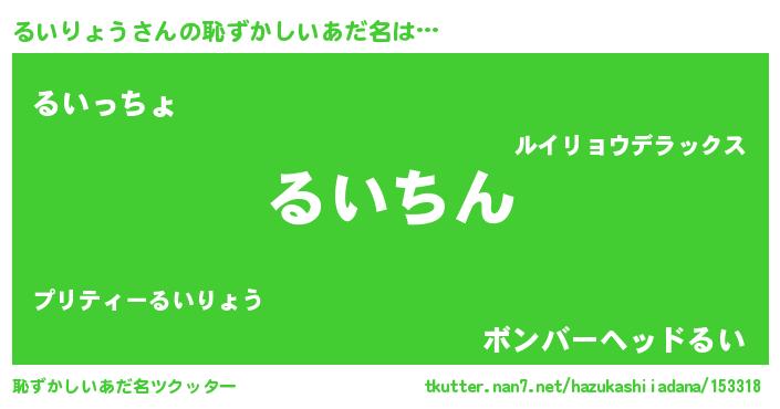 | ヒーロー風カッコイイあだ名 | 『ネオルイリョウ』『究極戦士ルイリョウ』 |