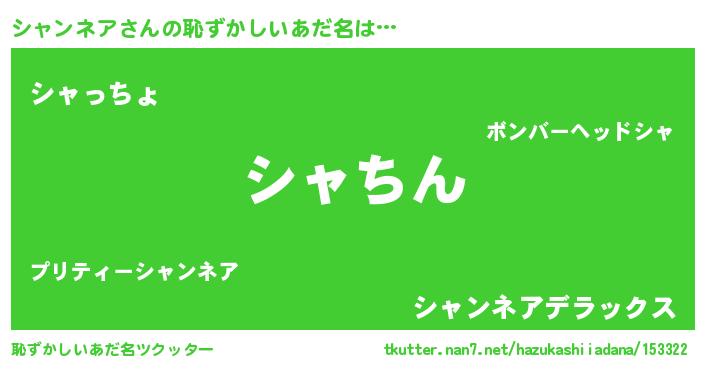| ヘコむあだ名 | 『シャンネア(爆)』『つくし』 |