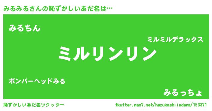 | ヘコむあだ名 | 『みるっちょ』『みるみる(笑)』 |
