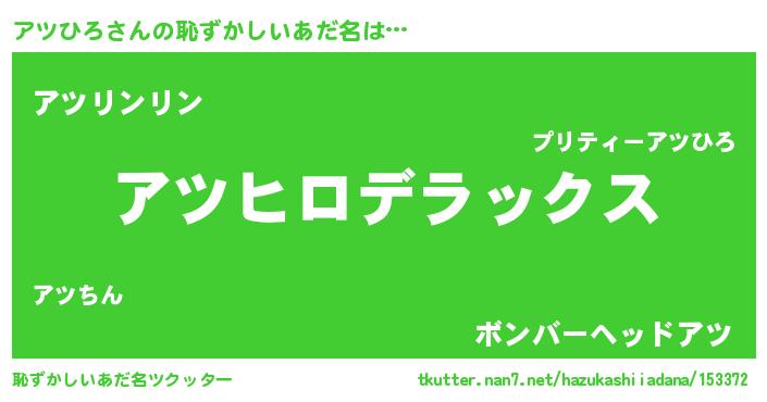 | 意味不明あだ名 | 『自称アツひろ』『なめこ科アツひろ属』 |