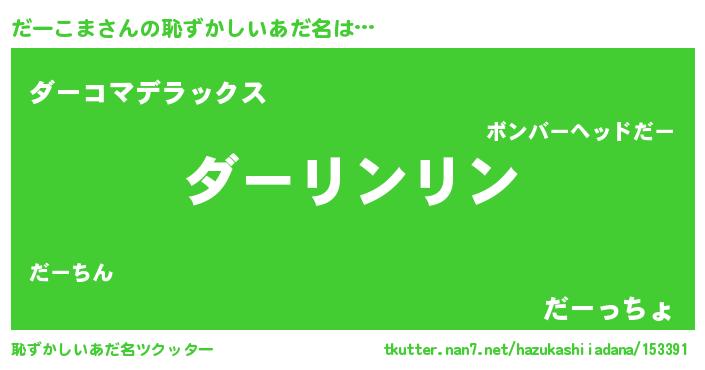 | 欧米人風あだ名 | 『アンジェラ・だーこま』 |