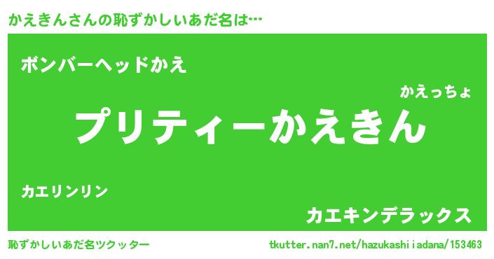| 意味不明あだ名 | 『ペロリンかえきん』『自称かえきん』 |