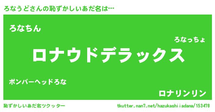 | ヘコむあだ名 | 『ろなうど(小並感)』『ろなっぺ』 |