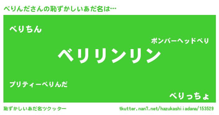 | 意味不明あだ名 | 『とにかく怪しいべりんだ』 |