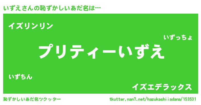 | ヘコむあだ名 | 『いずにゅー』『いずぷりん』 |