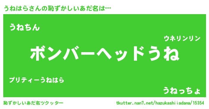 | ヘコむあだ名 | 『うねはら(笑)』『なまこ酢』 |