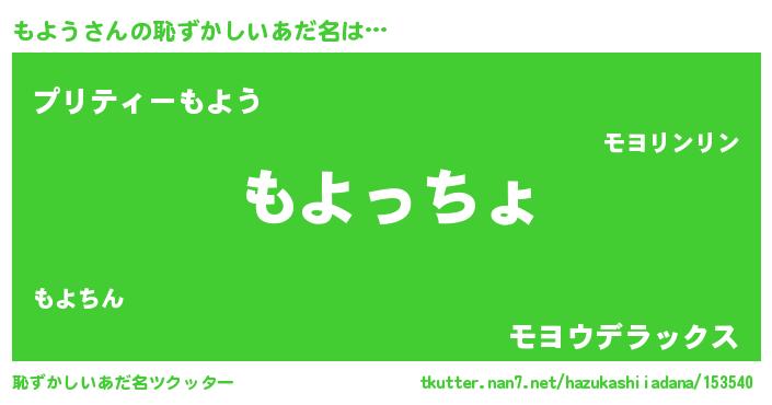 | ヘコむあだ名 | 『なまこ酢』『もよっふぃ~』 |