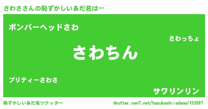 | ヘコむあだ名 | 『さわさ(苦笑)』『さわを』 |