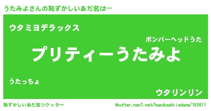 | 意味不明あだ名 | 『ペロリンうたみよ』『自称うたみよ』 |