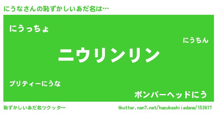 | 料理風あだ名 | 『にうなの豆乳スープ』『にうなごはん』 |