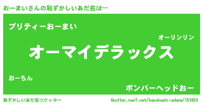 | 男性向けラノベタイトル風あだ名 | 『Re:おーまいから始める異世界生活』 |