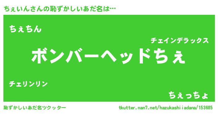 | ヘコむあだ名 | 『ちぇいん(爆)』『酢こんぶ』 |