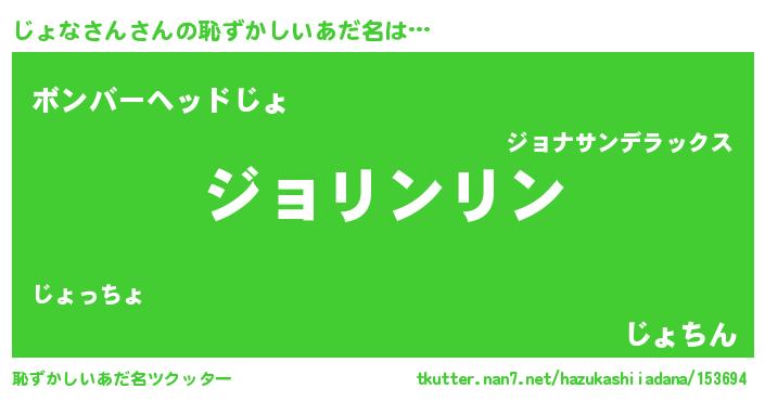 | ヘコむあだ名 | 『じょを』『じょなさん(遠い目)』 |