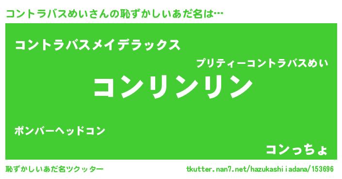 | 胡散臭い通販商品みたいなあだ名 | 『信頼と実績のサプリメント…その名も「コントラバスめい」』 |