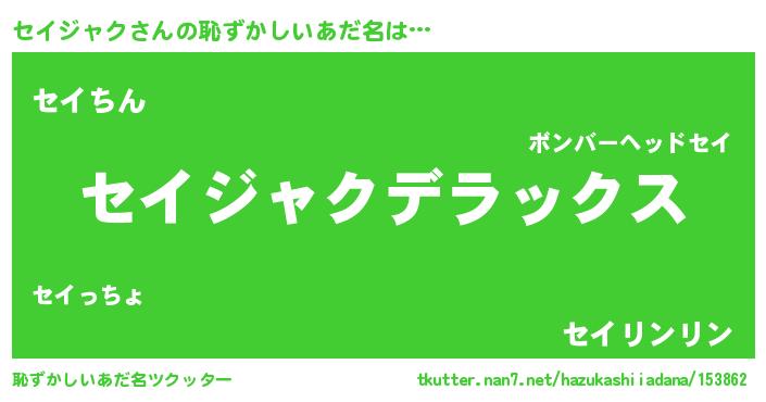 | 意味不明あだ名 | 『自称セイジャク』『永久保存セイジャク』 |