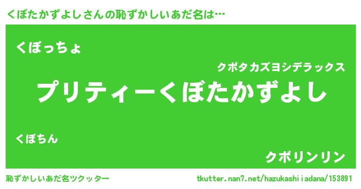 | ヒーロー風カッコイイあだ名 | 『スーパークボタカズヨシ』 |