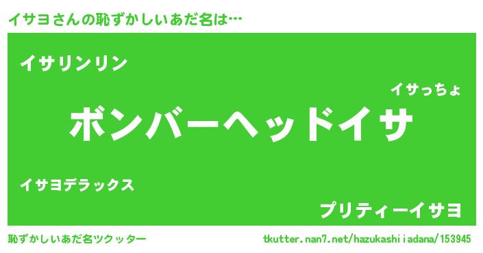 | ヒーロー風カッコイイあだ名 | 『友情の使者イサヨ』『黄金騎士イサ』 |